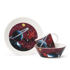 De Hobgoblin Moomin mok is de nieuwe mok uit de voorjaarscollectie 2018 van Arabia. De dramatische afbeelding toont de Hobgoblin terwijl hij op zijn zwarte panter over de paarse lucht rijdt, op zoek naar juwelen. HIj zoekt in het bijzonder naar een unieke robijn, die bekend staat als ‘King’s Ruby’. De mysterieuze Hobgoblin leeft aan het einde van de wereld in een huis zonder deuren of ramen, die met deze magische hoed wensen in vervulling kan laten gaan. De illustratie op deze mok is afkomstig uit het boek ‘Finn Family Moomin’, dat in 1948 werd gepubliceerd en dat plaatsvindt tijdens een magische en veelbewogen zomer in de Moominvallei!