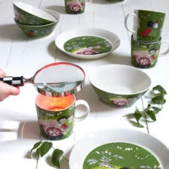 De Thingumy & Bob & King’s Ruby Moomin mok is onderdeel van de voorjaarscollectie 2018 van Arabia. Deze mok toont een afbeelding van één van de beroemde verhalen van Tove Jansson over Moomin en zijn vrienden, ditmaal gebaseerd op ‘Finn Family Moomin’ uit 1948. In dit verhaal reist de Hobgoblin naar de Moominvallei op zoek naar de King’s Ruby. Personages Thingumy & Bob, die hun eigen geheime taal spreken, hebben de robijn in hun koffer verborgen en zijn naar de Moominvallei verhuisd op zoek naar een veilig onderkomen. Tijdens een feest laat de Hobgoblin alle personages in de Moominvallei één wens doen: de slimme Thingumy & Bob wensen een replica van de King’s Ruby…