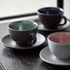 De Bitz kop met theeschotel zwart is gemaakt van robuust aardewerk. De buitenkant heeft een reactief, mat glazuur dat elke kop en schotel een uniek uiterlijk geeft en tegelijkertijd voor een mooi contrast zorgt in combinatie met de glanzende, kleurrijke binnenkant van de kop. Het oppervlak krijgt met de jaren een natuurlijk patina, waardoor de kop en schotel unieker worden. Kies uit verschillende kleuren voor de binnenkant en maak het compleet met andere producten van hetzelfde merk voor een uniforme tafelsetting. De kop en schotel zijn ovenbestendig tot 220 °C.