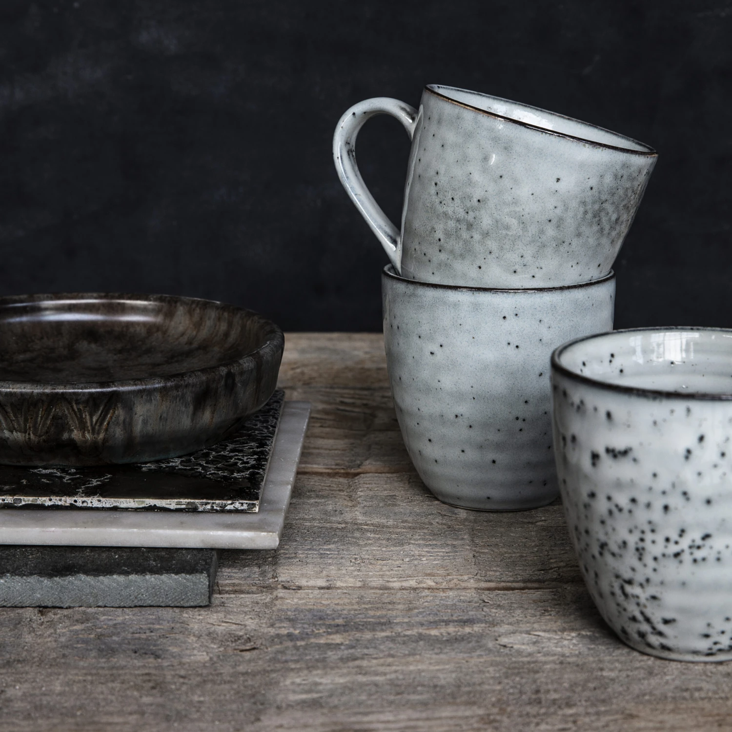 Deze prachtige Rustic mok van House Doctor laat uw koffie nóg lekkerder smaken! Gemaakt van porselein met een mooie grijs en blauwe glans, zorgt de mok voor een fijne rustieke sfeer. Omdat elke mok handgemaakt is, heeft elk exemplaar zijn eigen look & feel! Prachtig in combinatie met andere items uit de Rustic serie!
