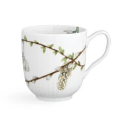 Mok met paasmotief uit de Hammershøi Easter-serie, geproduceerd door Kähler met een illustratie van Rikke Jacobsen. De mok heeft hetzelfde geribbelde oppervlak als de klassieke Hammershøi-serie, maar dan met een prachtig paasmotief dat het bijzonder lentegevoel vangt dat altijd rond Pasen de kop opsteekt. Combineer met de overige delen uit de Hammershøi Easter-collectie voor een complete look. Elk deel van het servies heeft een eigen, uniek motief dat een levendige tafelsetting creëert. De frisse lentetak, en de typische symbolen voor Pasen in de vorm van eieren, kuikens en veren, zijn een terugkomend element in de paascollectie van dit jaar,