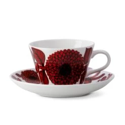 De handgemaakte Röd Aster koffieset is onderdeel van de iconische Röd Aster-serie: ontworpen door Stig Lindberg voor het Zweedse merk Gustavsbergs Porslinsfabrik. Het assortiment werd oorspronkelijk gelanceerd in de vroege jaren ’70, maar werd in 2008 opnieuw in productie genomen. Gemaakt van fijn beenporselein, is de Röd Aster serie tegenwoordig één van Lindberg’s meestgeliefde ontwerpen. Vergeet niet ook een kijkje te nemen bij de andere items uit de Röd Aster-collectie, voor een complete retro-look!