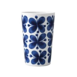 De blauw en witte mok zonder oor is onderdeel van de Mon Amie serie, ontworpen door de Zweedse ontwerper Marianne Westman in de jaren 50.